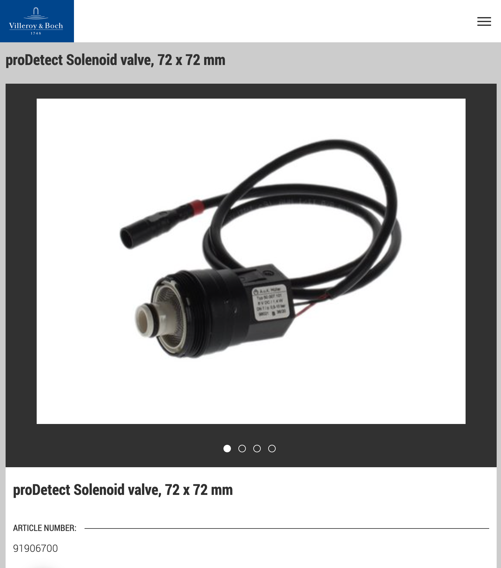 Gustavsberg / Villeroy & Boch proDetect Solenoid Valve 91906700, 6574894
